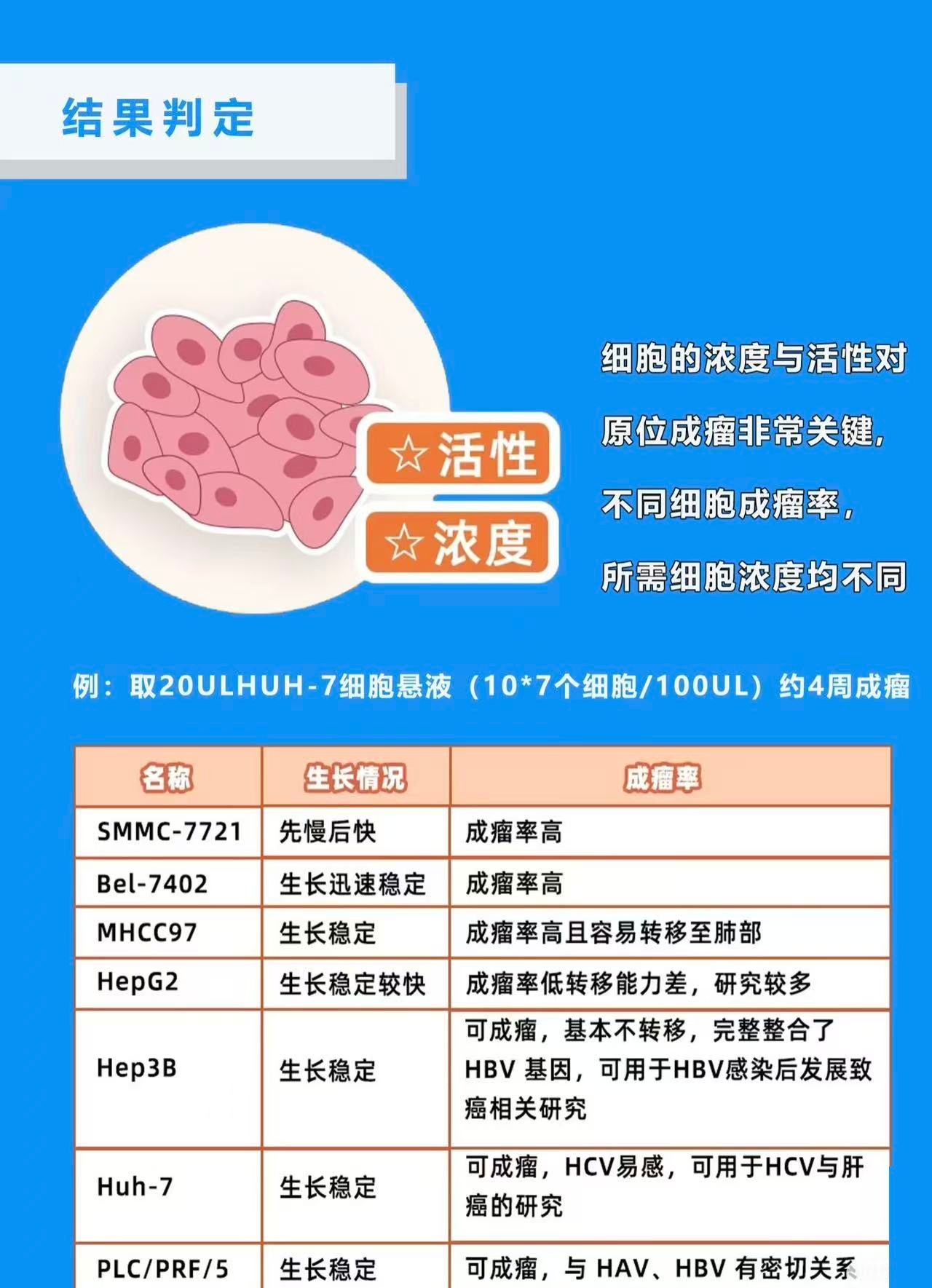 l 细胞或组织准备:常用人肝癌细胞系如Huh-7、HepG2等,或新鲜肝癌组织。细胞需调整至适当浓度(如1×10^7 cells/mL),组织需切成1-2mm小块。